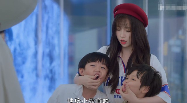 她一把抱住两个孩子,拿捏住了他们的嘴巴,要求他们和小熊道歉,看得出来有“路见不平拔刀相助”的正义感。