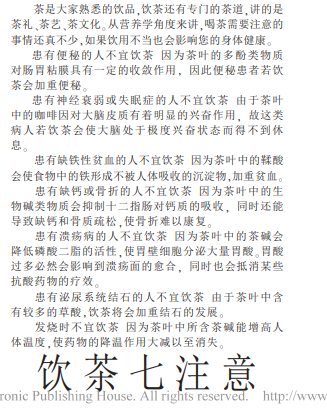 参考资料[1] 饮茶七注意[J].云南农业,2005
