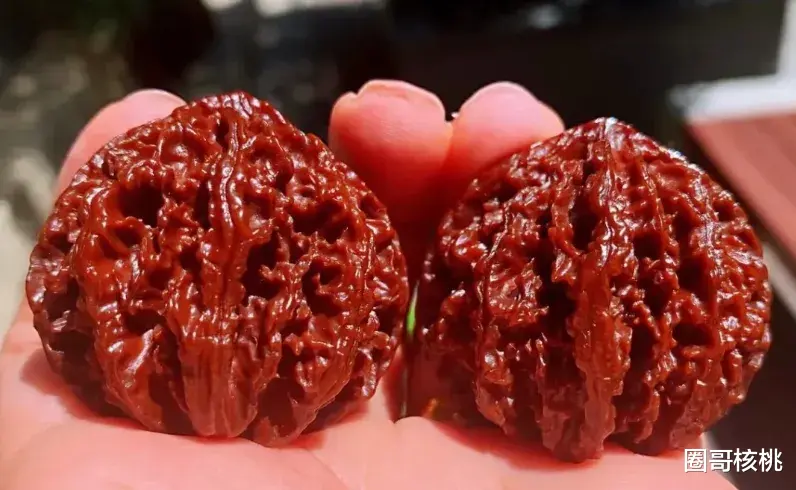 为什么大家喜欢玩刺灯笼?说白了,这种核桃的魅力主要在于它的盘玩效果。刺灯笼的纹路深邃而密集,边和筋特别薄,盘得久了,会呈现出一种红润透亮的光泽。也正因如此,它还有个“血灯笼”的别名。不过,这光鲜的背后,是你手指的“一片狼藉”。刺多且硬,盘起来比针扎还酸爽。哪怕是身强体壮的大老爷们,也得一边盘一边吸气:“嘶~这到底是核桃还是海胆?”