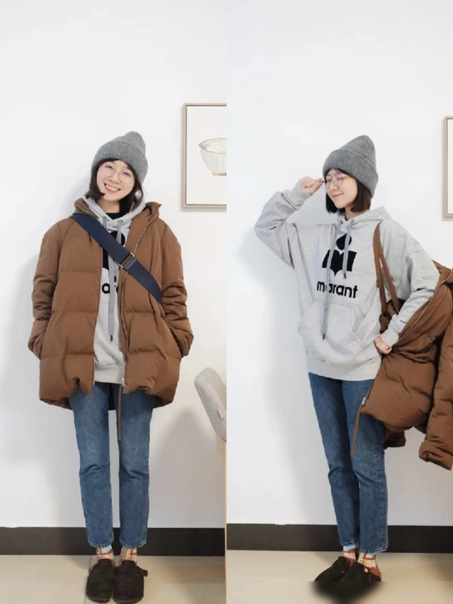 【方案3】驼色羽绒服,推荐和浅色卫衣混搭