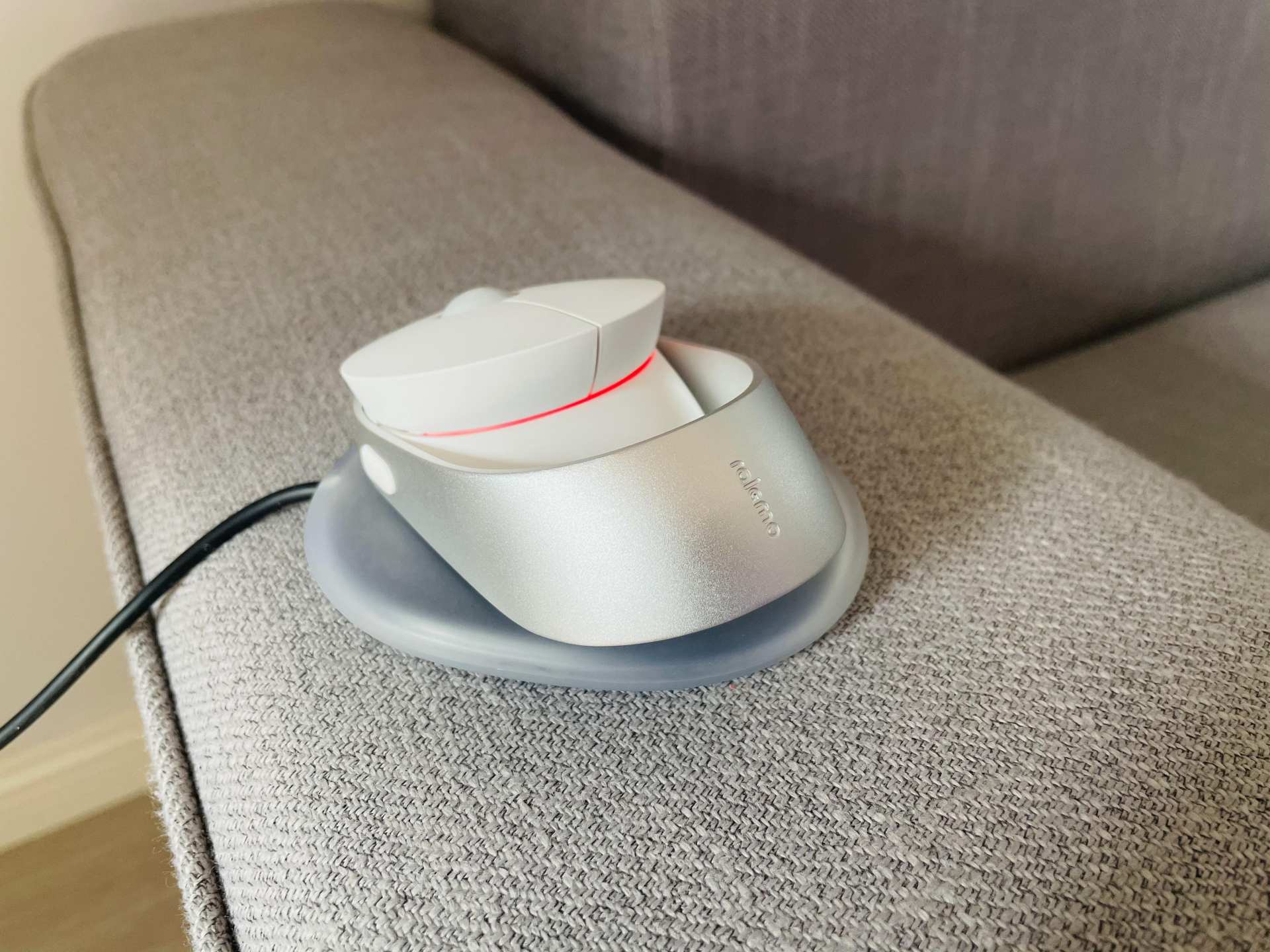 ▼雷柏Ralemo Air 1无线蓝牙鼠标内置300mAh锂电池,支持有线充电,也支持Qi无线充电,无线充电时红色LED灯环亮起,提示我们正在充电
