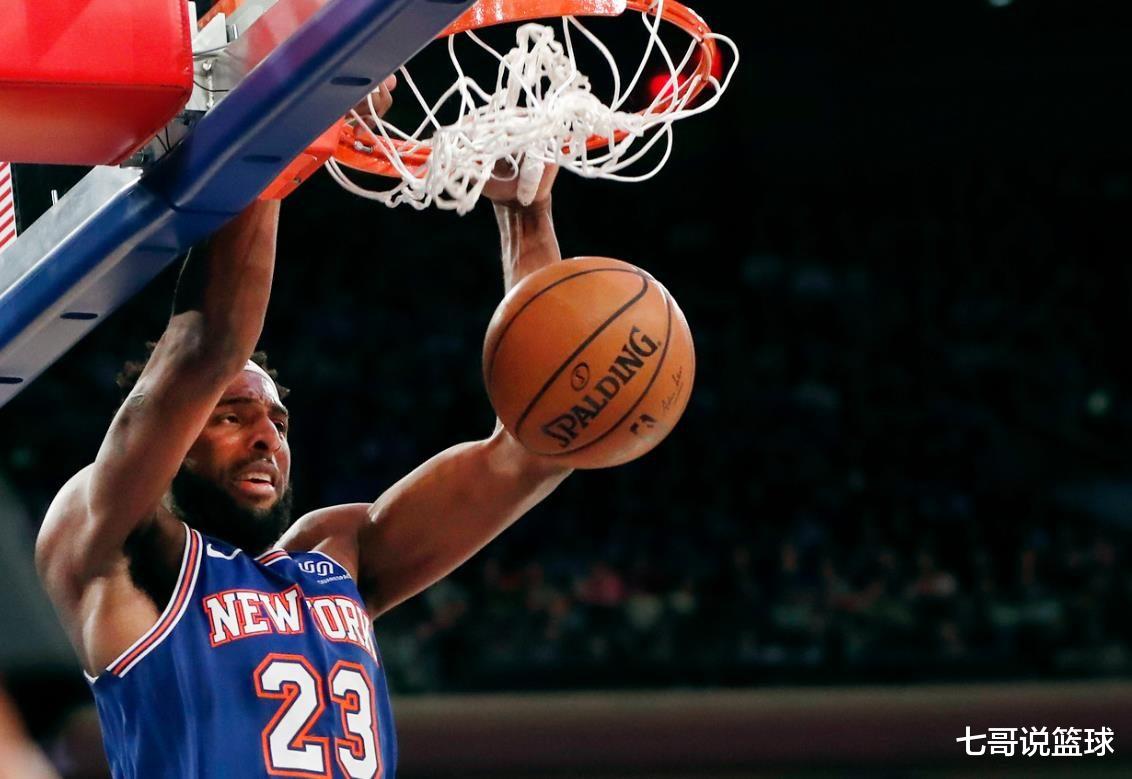 尼克斯队曾在揭幕战中,被凯尔特人队打的毫无招架之力,也曾血虐约基奇领衔的掘金队,最重要的原因就是防守不够稳定导致的。或者,也可以说,唐斯无法兼备攻防两端,需要有人为他分担内线的防守压力,米切尔-罗宾逊显然是最理想的。