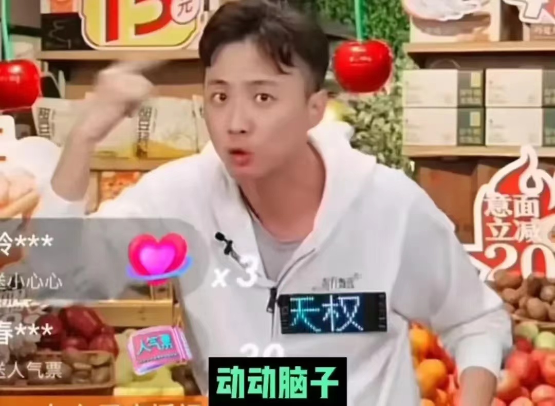 孙东旭认真地倾听着天权对价格的见解。天权伸出右手的两根手指,一边比划,一边说道:“你这面子值两块,对吧?”孙东旭听后,点着头,笑着说道:“对!我这面子也就值两块钱吧!感谢啊!感谢厂家,感谢大家捧场!”但在天权的眼里,他认为一个人的面子并不仅仅是两块钱,而是更多的价值。他说:“一单,值两块!那100单呢?200!”他问导演:“我们今天卖了多少单了?”导演大声回答道:“已卖3000单!”天权听后,立马继续对孙东旭说道:“卖了3000单,那就是6000块啊!这真的是靠脸吃饭!因为,一个人,买一张面子2块钱,这靠脸吃饭的代表人在这呢!”他一边说着,一边指向了孙东旭。孙东旭当场苦笑着感叹道:“彻底被(天权)拿捏了!天权,我确实没时间跟你解释,一会回去后,我跟你好好解释啊!你给我一个机会!”