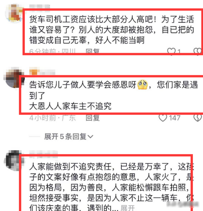 女车主的宽容处理原本有望带来一个温情的结局,但货车司机老李的儿子小李发出的一篇千字长文却意外掀起新的波澜,言辞间充满了对社会不公的控诉和对父亲生活境遇的抱怨,甚至对女车主的好意避而不谈,完全没有半句感谢之意,反而充满着让人不适的阴阳腔调。