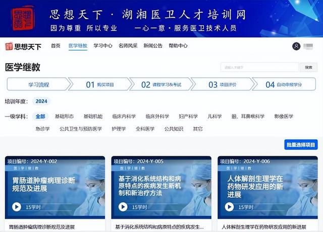 经组织专家进行专业评审,“思想天下·湖湘医卫人才培训网”(原“正中华网”)作为入围培训机构,积极响应通知要求,为湖南省医卫人才提供高质量、多样化的培训课程。平台将有覆盖——儿科学、护理学、公共卫生与预防医学、急诊学、临床内科学、临床外科学、眼、耳鼻喉科学、影像医学 、妇产科学、全科医学、基础形态、基础机能、康复医学、麻醉学、卫生法规与医学伦理学、重症医学、核医学17个学科,64个继续医学教育项目,陆续上线,所有项目均属省Ⅰ类。