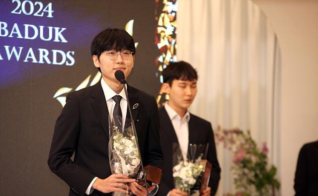 2024年韩国围棋大奖颁奖仪式12月26日在京畿道城南市盆唐区举行,申真谞无可争议地一人独得最优秀棋手、最具人气、男子最多胜局与最高胜率四个奖项。经投票选出的最优秀棋手和优秀棋手得主公布时,获奖者申真谞、朴廷桓在舞台现场上演“互吹脱口秀”,是内敛低调的围棋界少见的一幕。