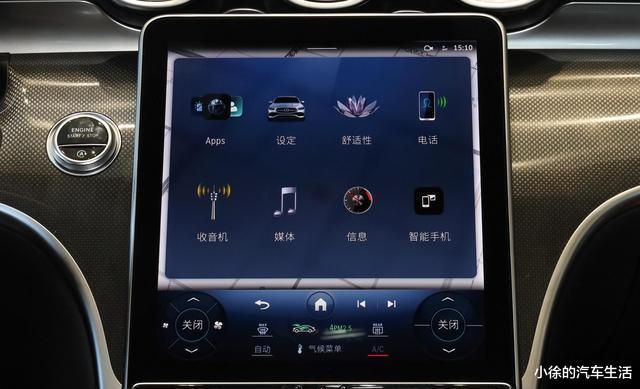 新款奔驰C级内饰延续现款布局,风格向S级看齐。五圆形空调出风口配镀铬饰条。中控屏11.9英寸,支持CarPlay和Android Auto,增强功能性。