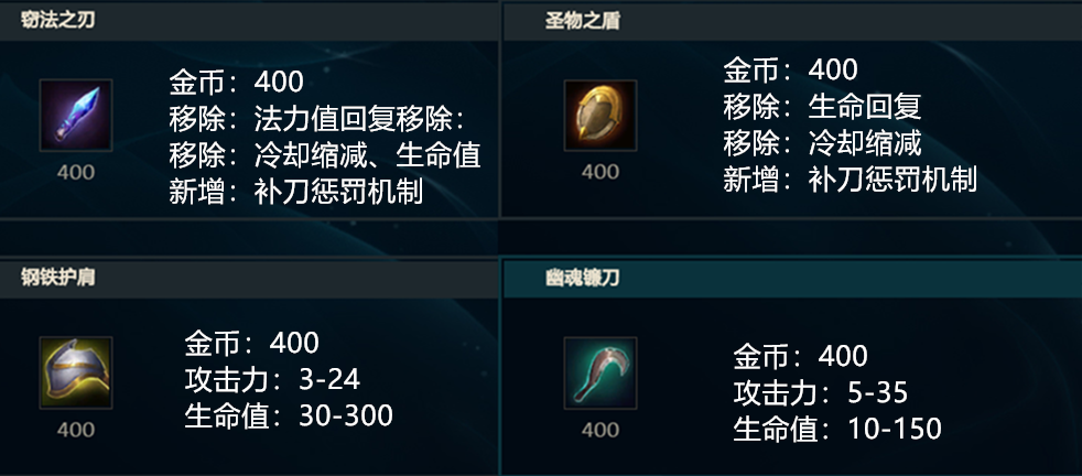 但是好巧不巧的是,随着新版本的更新,辅助又被大砍一截。我们已经熟悉的辅助装备,在最新版本的更新中已经大变样。好处是我们只需要最开始花400块买完辅助装备之后,就不再需要去花钱升级它,在经济上节省了差不多1000块吧。坏处是所有的辅助装备,不管在什么阶段都不再具有减CD的属性,这对于需要CD的辅助英雄是很致命的。在这样一个环境下辅助对AD位置的要求自然也是会越来越高,有这么几个英雄是玩辅助的人很不想见到的,一旦选出来,开战几分钟之后心态就已经开始崩塌。