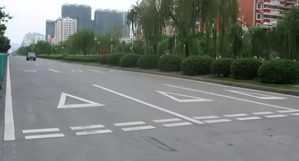 这类标线通常由一个或多个倒置的三角形与前方停止线或人行横道线相连,形成醒目的视觉警示,提醒驾驶员在此处需减速慢行,注意观察,必要时停车让行。