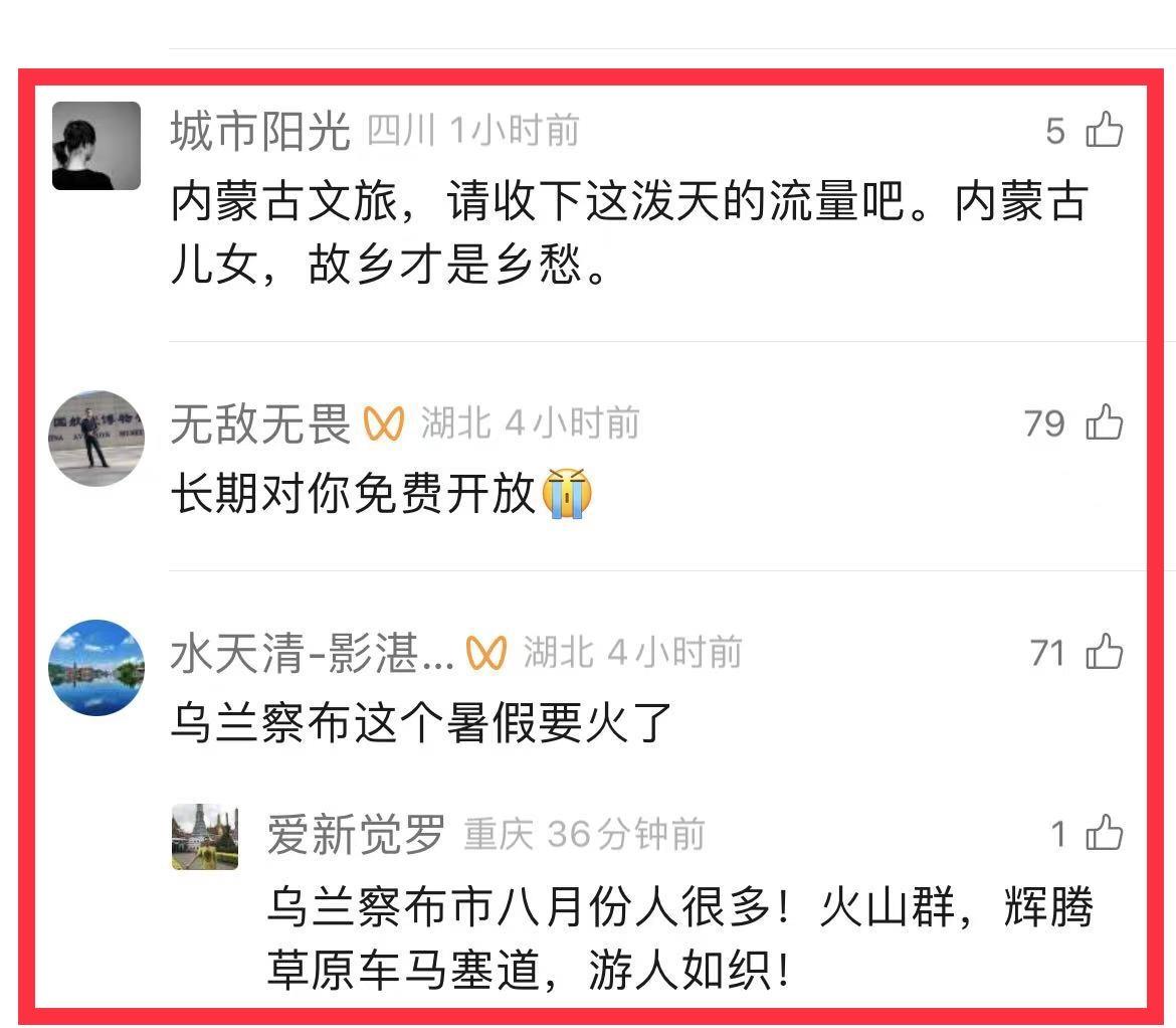 内蒙古文旅厅向张萧冉同学送上一份大礼,承诺内蒙古全省所有景区长期对张萧冉免费开放,不论是呼伦贝尔碧野牧歌,还是额济纳旗千年胡杨林,还有乌兰察布火山遗迹内蒙古文旅回信潇冉,全省景区免费对她开放:包含额济纳旗胡杨林。