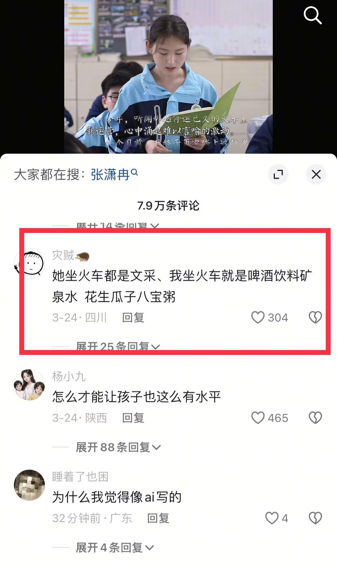张潇冉就读于杭州市丁兰实验中学初三女生,2025年春节返乡过年,在那趟绿皮火车上因为偶遇一对老人带着孙子回家过年,刚好与张萧冉同一趟列车,这对爷爷奶奶为了让自己孙子睡得舒服点,变蜷缩在本来就很仄床角落里,火车上卖零食推销员,花言巧语打动不了老人购买欲望,一句孩子爱吃,老人义无反顾买下啦零食给孙子,不管孙子爱不爱吃,推销员这句话点中了老人对孙子的爱。