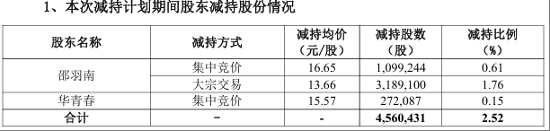 邵羽南为公司控股股东、实际控制人、董事长,华青春为公司副总经理。从减持均价来看,邵羽南、华青春本次减持计划共套现6612万元。