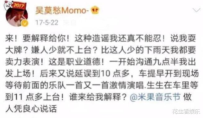 更让人感到尴尬的是,吴莫愁还被人拍到现身在某18线小县城商演上。