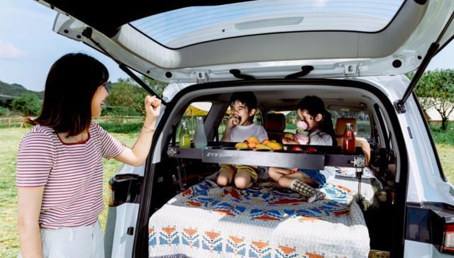 五菱佳辰露营车专为露营设计,注重舒适度,可放倒座椅变床车。配独特床垫,后备厢如移动帐篷遮风挡雨。设计桌板带内凹结构,存放食物饮料防颠簸。