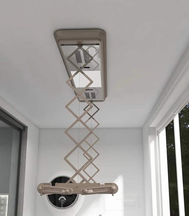 电动晾衣架是在逛智能家电之时被吸引住的。往昔我们晾晒衣物,需仰着头,持着个衣叉忙活许久,着实累人。其后有了手动的晾衣架,能够将晾衣绳手摇降下,再把衣物挂上,而后手摇升起悬挂。虽说便利了不少,然而亦存在诸多弊端,譬如衣物过重的话,手摇之际颇为费劲。绳子使用长久了还会出现卡顿不动,手摇亦摇不下来的情况。