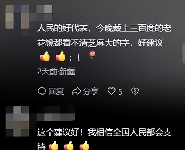 本质上就是把繁杂的文字简化,最好是直接说明一天吃多少,简明扼要,字体也能变大点,这样对老年人就比较友好了,能够很大程度上解决老年人阅读障碍,这一建议得到很多人支持,有人直言:这是人民的好代表!