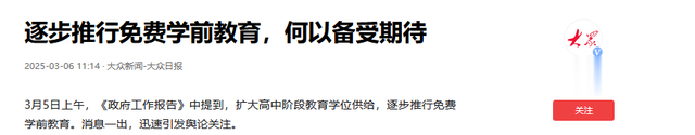报告解读|逐步推行免费学前教育写入政府工作报告,如何落地?2025-03-05 22:01·新京报