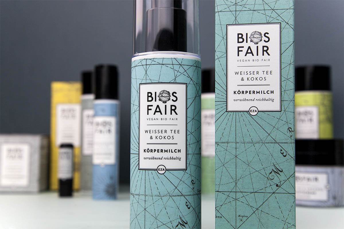 Biosfair的包装采用了地图纹理作为包装主元素,带有复古和探索的风格,视觉上独特且有辨识度。黑色瓶盖搭配白色瓶身,加上彩色调的标签,既突出品牌名和产品信息,又不失时尚感。包装正面清晰标注天然成分,迎合当下注重环保和健康的消费趋势,也让消费者能快速了解产品特性。外包装纸盒和瓶身图案相呼应,提升了整体的品牌质感。