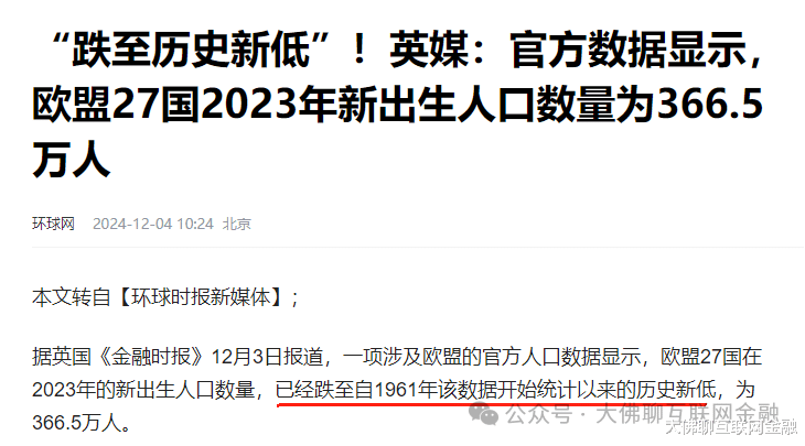 包括欧洲,也在被同样的问题困扰。2023年欧盟27国一年新生儿总共才366.5万人,直接创了统计以来的历史新低,而欧洲那边也早就开始用高福利来平衡生育率了。