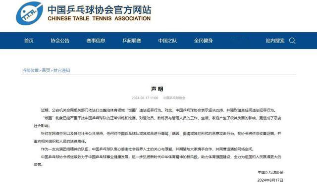 当下,体育圈的"饭圈"现象正引发高度关注。近期,多个相关部门联手出击,严厉打击造谣诽谤等不法行为,甚至有人因此被刑拘。在此背景下,中国乒乓球协会于8月17日发布声明,旗帜鲜明地表示坚决抵制"饭圈"文化。