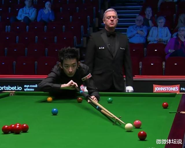 决胜局双方你来我往展开拉锯。当比分来到69比32时,台面剩余分值仅剩2分,张国栋错失关键红球后,吴宜泽抓住最后机会展开绝地反击。这位年轻选手连续布置障碍球战术,试图扭转败局。经验丰富的国栋冷静应对每个难题,最终抓住对手防守漏洞完成清台,单局91比45锁定胜局。总比分定格5比4后,张国栋率先拿到晋级门票的决胜权,距离突围仅一步之遥。