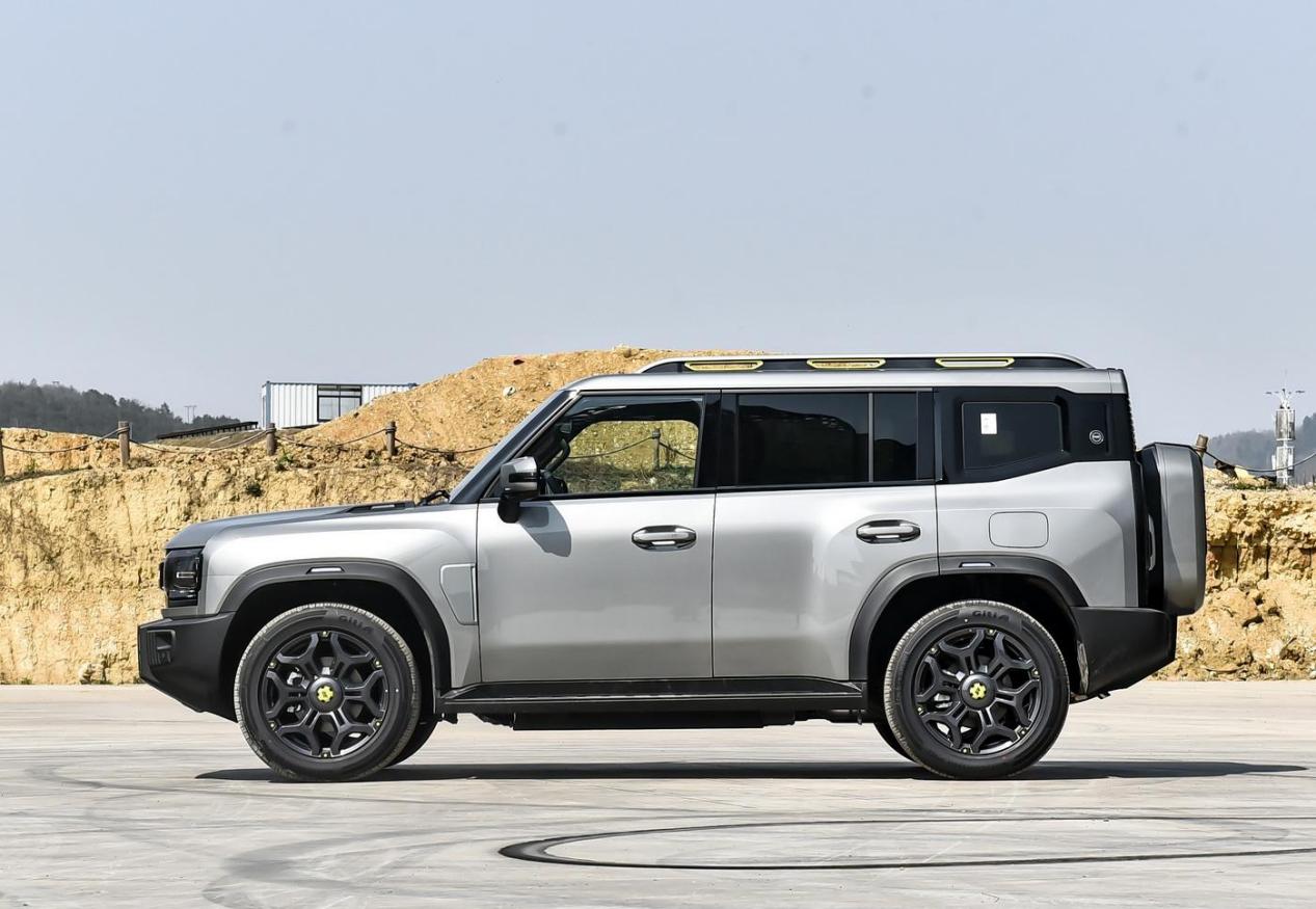 车身侧面,悬浮式车顶的设计与路虎卫士有几分相似,算是紧跟潮流。硬朗的腰线从车头贯穿至车尾,拉长了车身视觉比例。车顶行李架也提供了额外的拓展空间,可以加装侧爬梯和行李箱,对于喜欢自驾游的朋友来说是一个加分项。不过,超过4.7米的车长和超过2米的車宽,在城市中停车可能会略显不便。
