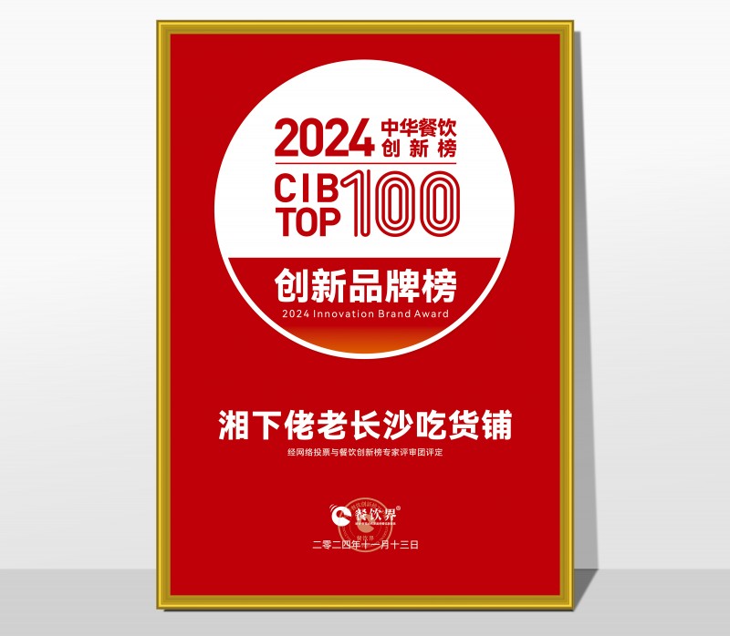 近日,备受瞩目的中华餐饮双创论坛暨第8届中华餐饮创新榜TOP100颁奖盛典在上海隆重举行。湘下佬老长沙吃货铺凭借其独特的品牌魅力、卓越的产品品质以及持续的创新精神,成功摘得“中华餐饮创新品牌榜TOP100”的殊荣。