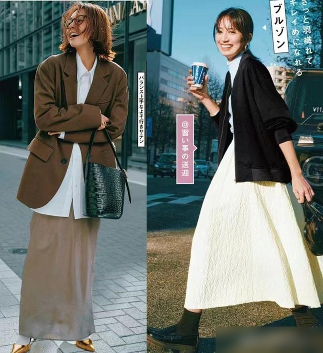 技巧①.外套和半身裙的搭配要有反差感,才能提高比例