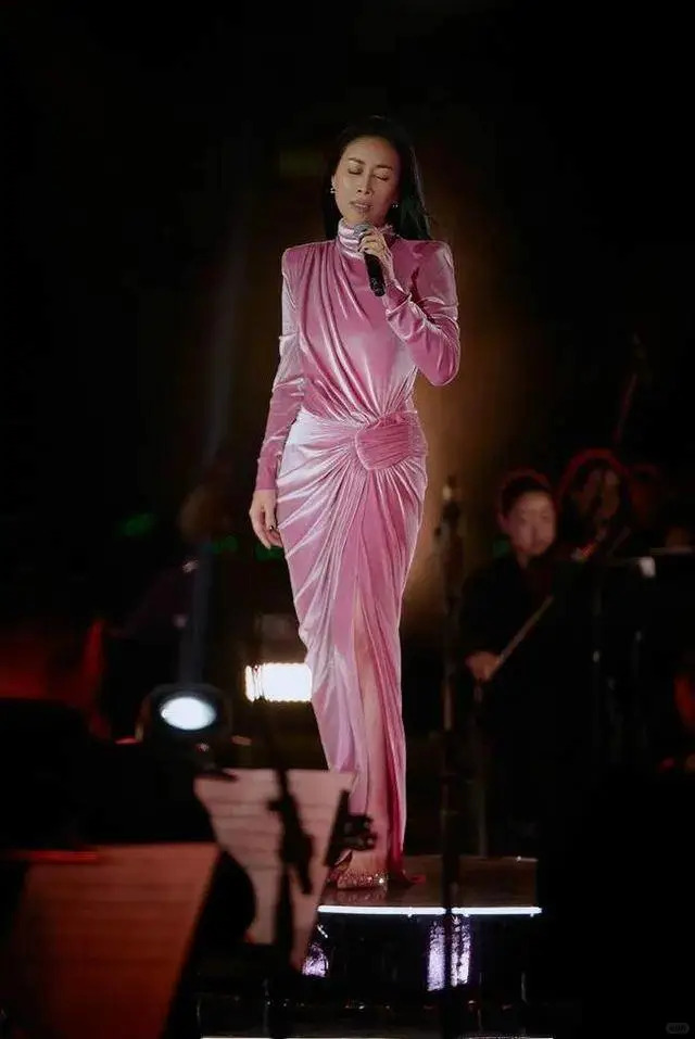 唱到高潮部分,她明显有点接不上气,吃力得像在爬山,干脆一省事儿,把话筒往观众席一伸:“来,你们唱!”台下粉丝倒是配合,齐声喊着“干杯朋友”,场面热热闹闹,可总觉得少了点灵魂。