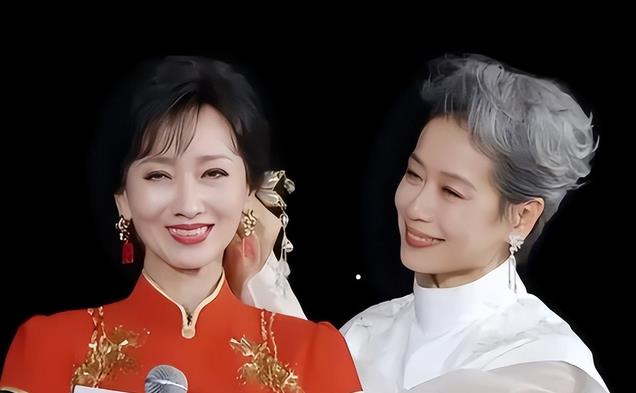 今年已经六十六岁的小青陈美嘉,虽然其少露面但是她穿着一身墨绿色的礼服,站在了一身白裙的赵雅芝身边。