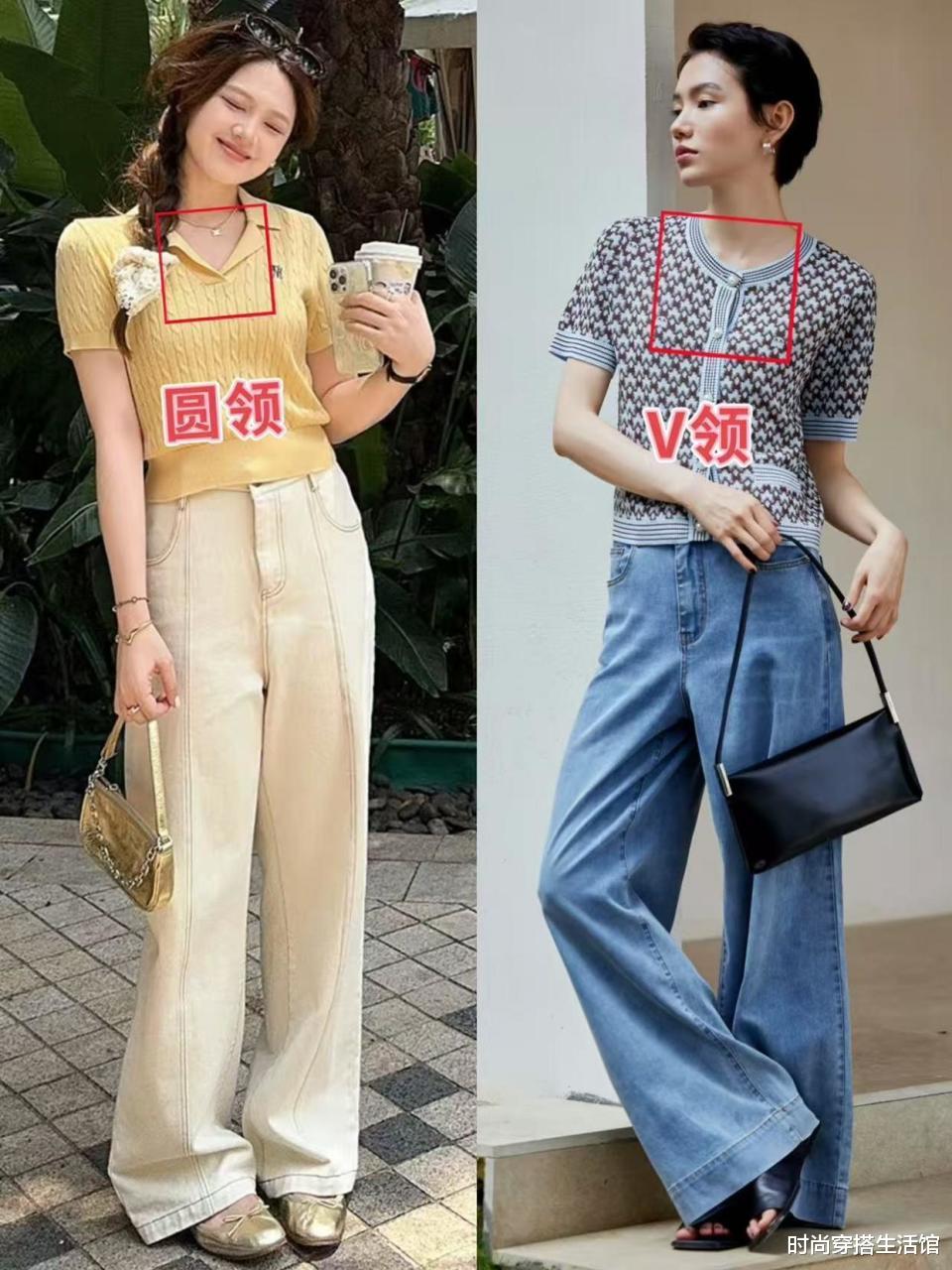 春夏的上衣除了T恤我们还可以选择针织短袖,不管是从款式的松紧合适领口的设计,对于有品位的女人来说选择针织短袖会更加的舒适和简约。比如像是微胖身材的女生我们可以选择宽松的针织短袖,身形比较纤细的话那就选择合身的版型,从而更好的凸显身材比例。