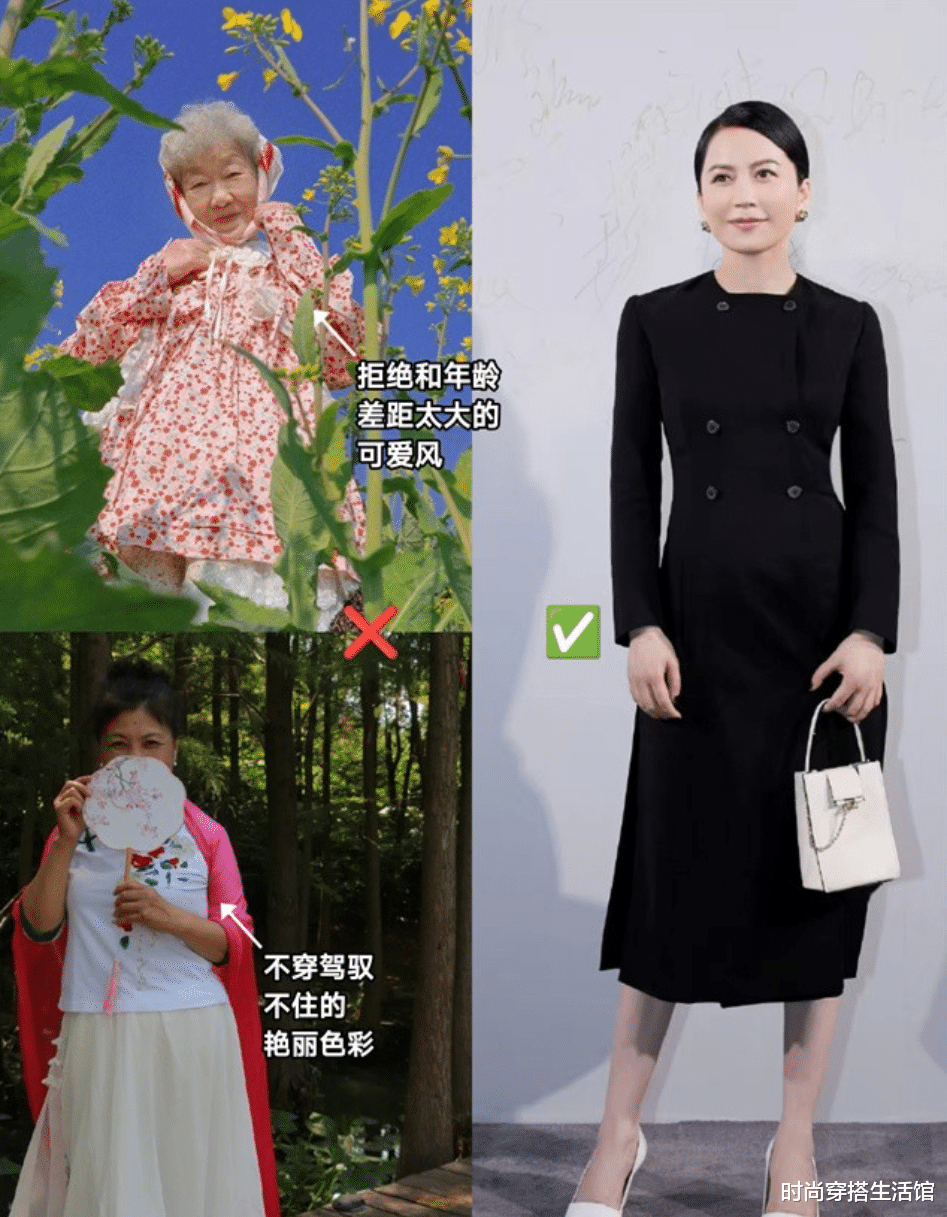 四五十岁的女人早就过了扮嫩的年纪了,如果像大龄女性还选择穿短裙、蓬蓬裙的话,视觉上看起来就非常的老气和装嫩,完全拉低了整体气质。