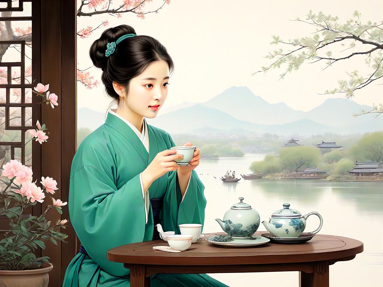 一个阳光明媚的春日午后,小二黑奉掌柜之命前往茶馆采购茶叶。刚踏入茶馆,一阵清香扑鼻而来,他循香望去,只见一位身着淡绿衣裙的女子正低头专注地泡茶,那便是春花。小二黑被她那专注而优雅的动作深深吸引,一时竟忘了上前打招呼。