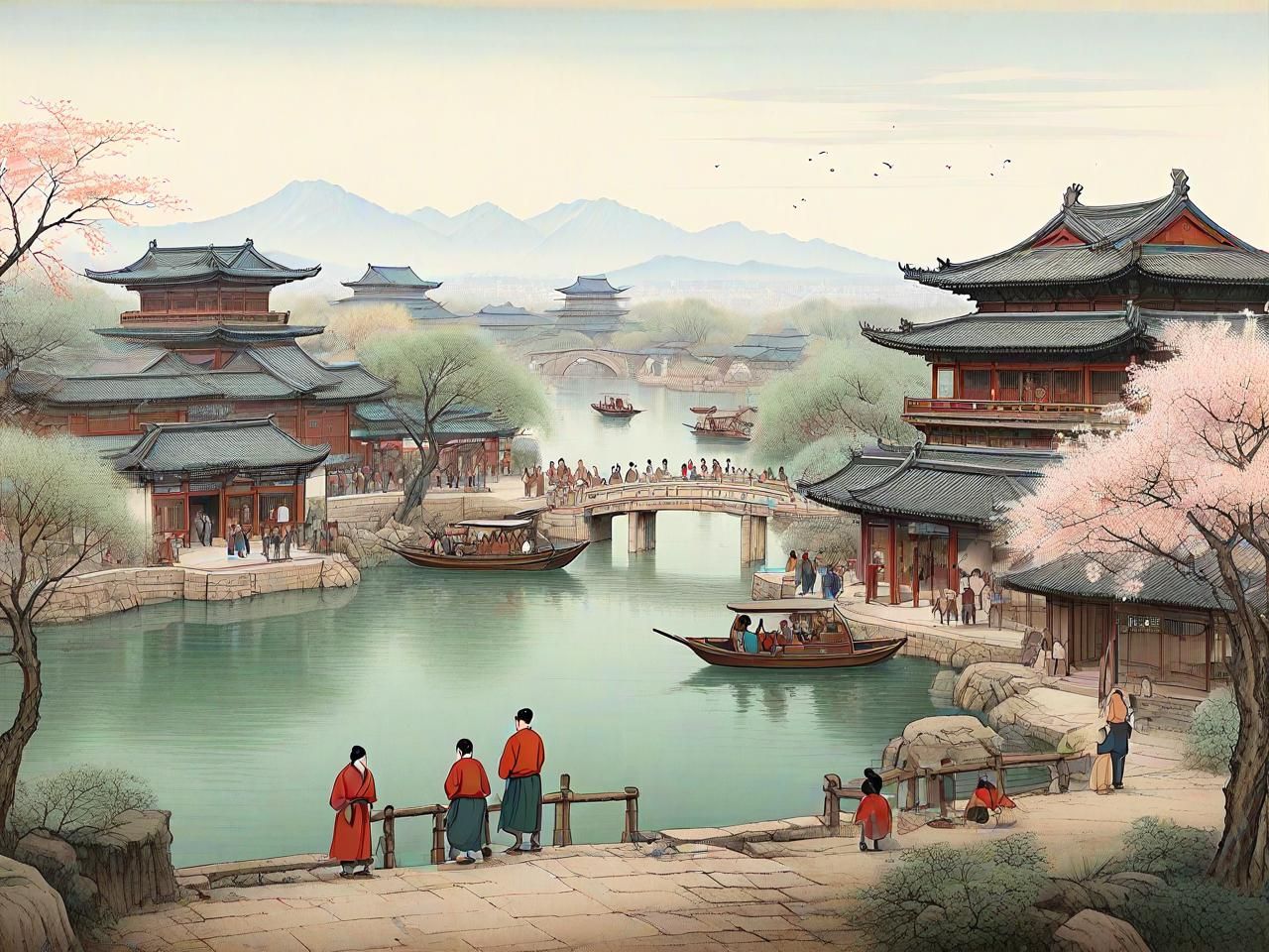 在北宋繁华的都城汴京,一幅《清明上河图》生动展现了当时社会的繁荣景象。熙熙攘攘的街道、繁忙的船只、热闹的市集,以及各色人物的生活剪影,共同绘就了一幅生动的历史画卷。