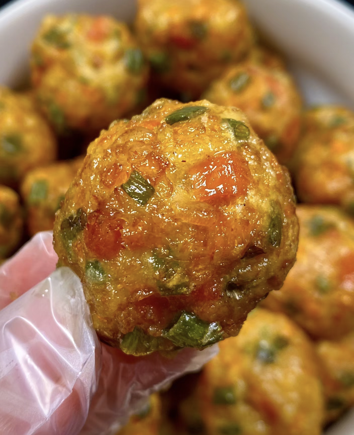 第八步,为了使丸子更加酥脆,我们可以将丸子再次放入油锅中复炸,直到丸子呈现出金黄色。这样,我们的金针菇火腿肠丸子就完成了。