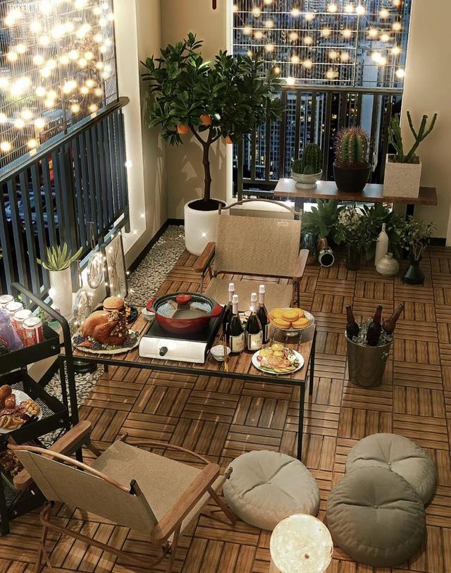 阳台可是家里阳光最充足的地方!一张小圆桌+两把椅子的对坐,再养点绿植和鲜花,高低错落的绿色空间,抬起头就能看见外边风景,太放松惬意了!