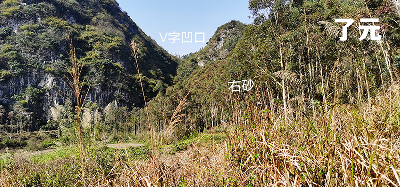 05.于坟左正看右砂,亦是跟左边一样有Ⅴ字形凹口。由此可知坟之左右方皆有凹风吹穴。