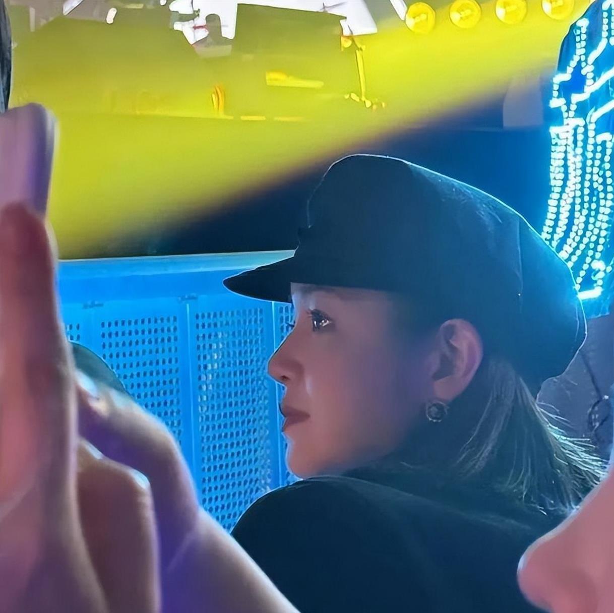 陈妍希演唱会低调现身在演唱会上现身的陈妍希还是挺低调的。她穿了一身黑衣服,但依然很有魅力。她头上戴着一顶贝雷帽,还化了精致的妆容。