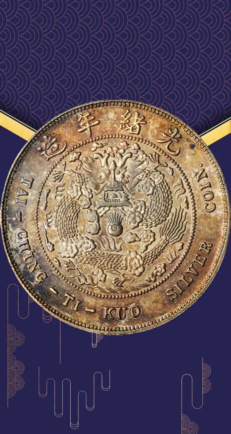 珠圈围绕着龙纹。上方“光绪年造”,表示铸造年号,火焰珠有七个焰,龙尾朝向右边,尾末有九条鳍。