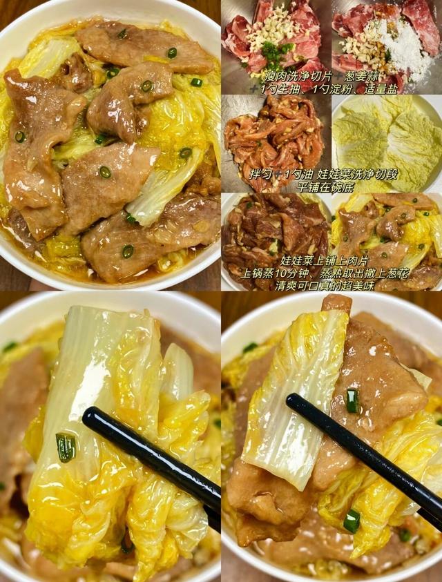 娃娃菜蒸肉是一道营养均衡的家常美味。娃娃菜含有丰富的维生素C和纤维素,能够增强孩子们的肠胃蠕动,促进消化吸收,同时提升身体的免疫力。搭配上瘦肉中的高质量蛋白质和铁质,不仅能够提供孩子成长所需的重要营养,还能有效防止贫血,促进血液健康。