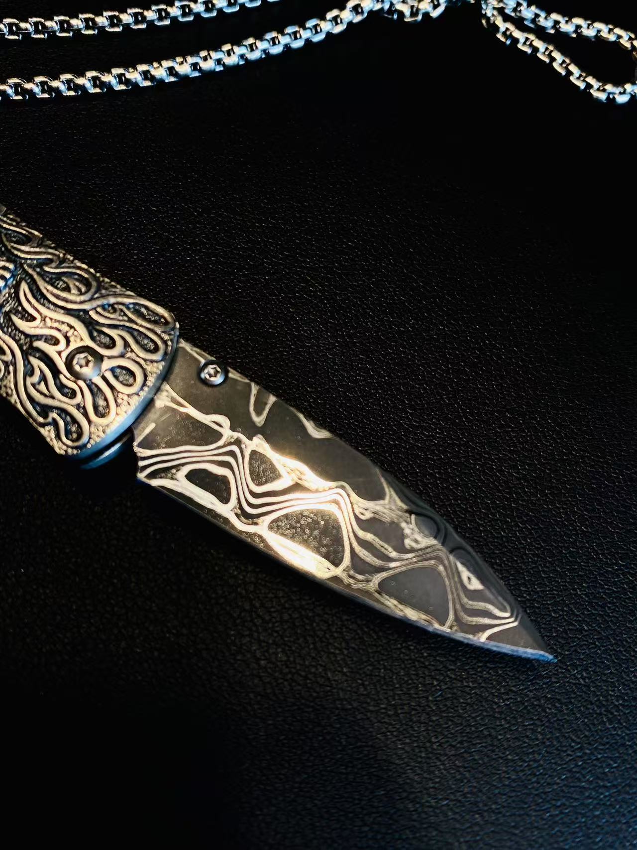 以刀具产品而言,刃材的选用堪称一绝。威廉亨利常采用以ZDP189为核心的大马士革钢作为刃材,这种钢坯需经历复杂且精细的锻造过程,反复折叠不少于300次,从而形成极为细密的结构。如此精细的工艺,使得刀具硬度达到63-65这就意味着,在切割之时,它能够展现出格外出色的锋利度,能很轻松地去应对各类切割任务。