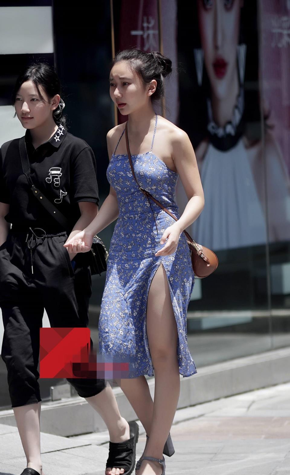 街拍:高叉连衣裙,让小姐姐的腿又直又长