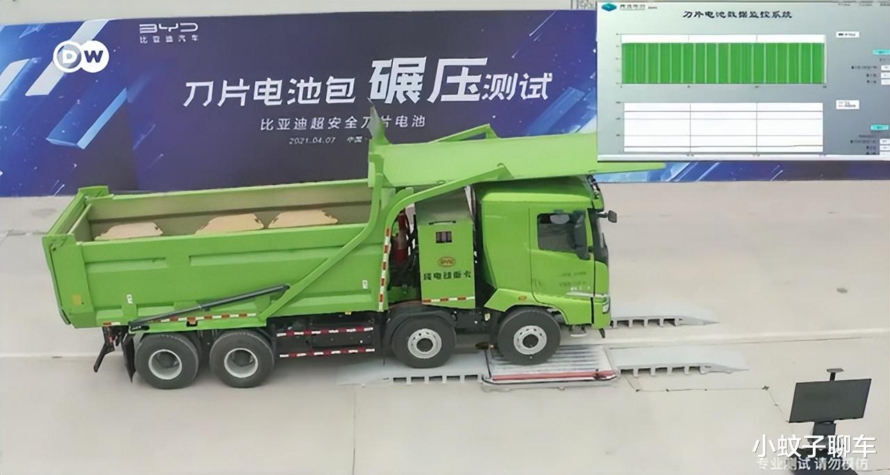 当然了,比亚迪之所以能取得如此大的成功,也离不开它的刀片电池技术,除了寿命长、强度高、续航长以外,刀片电池在安全方面也十分有保障,在经过了炉温、过充、针刺、挤压等各种严苛的测试后,刀片电池能够做到不冒烟、不起火、不爆炸,是让46吨满载重卡碾压刀片电池包之后,刀片电池包完好,无漏液、无变形、无冒烟现象,装回原车依旧可以正常使用,由此足以证明刀片电池在安全和强度方面的卓越性能。