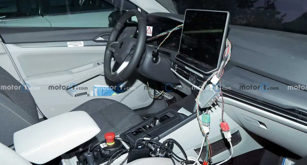 有趣的是,对当前高尔夫的一个常见批评是它的触摸屏。具体来说,没有用于操作收音机和空调系统的模拟控件,通过触摸来调整它们可能很棘手。我们在GTI第一次驾驶审查中就遇到了这一点,注意到在崎岖的道路上,做一些简单的事情,比如调整收音机音量,可能会很困难。在尝试使用屏幕时,布局也没有留下休息的地方。这款测试骡子有一个更大的屏幕和一个倾斜的底座,大众可以解决这个问题。