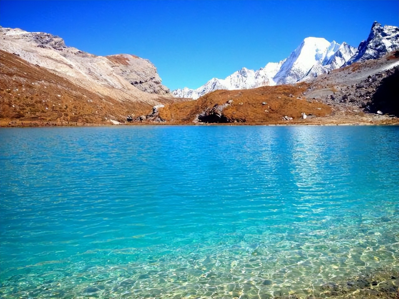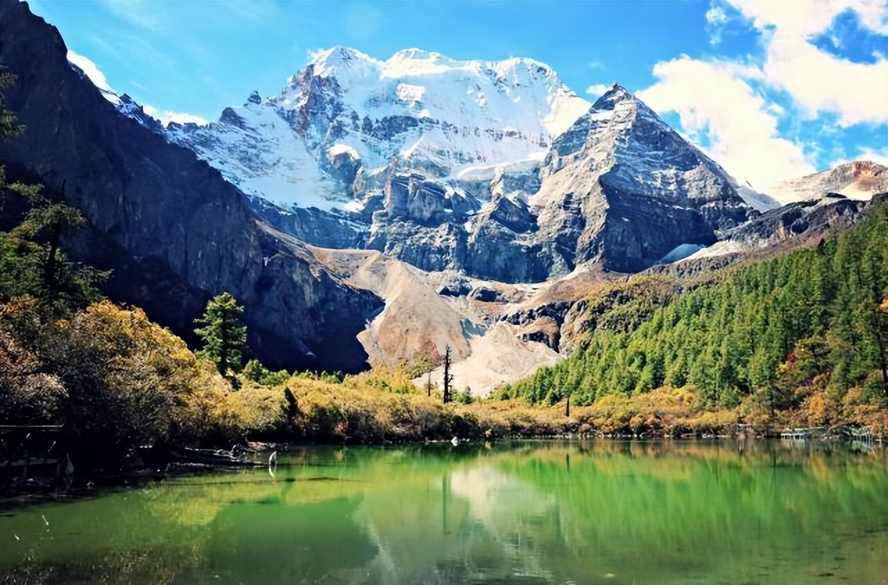 五色海因其在阳光下呈现出五彩斑斓的颜色而得名,是稻城亚丁的一大奇观。