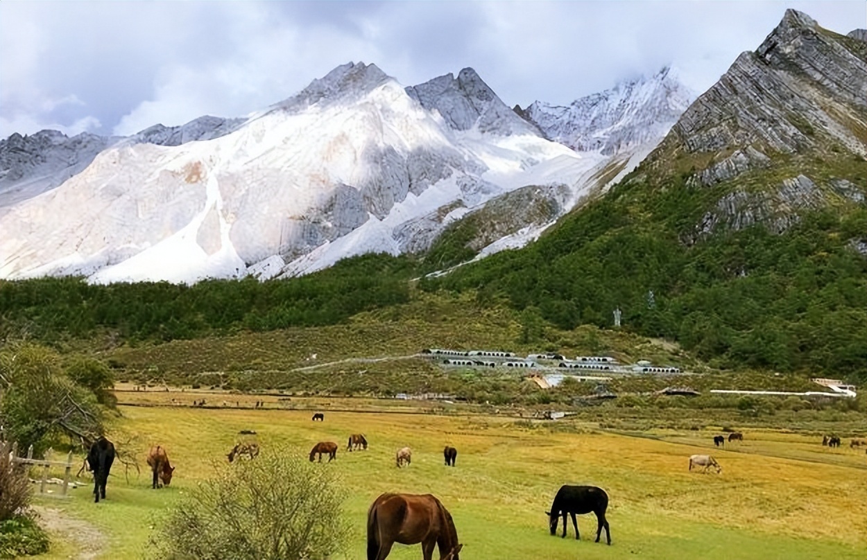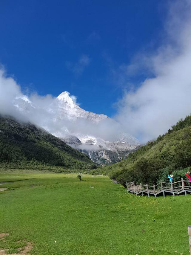3.洛绒牛场:当你下了电瓶车,就到达了风景如画的洛绒牛场。在这里,你会被眼前的美景所震撼——蔚蓝的天空、洁白的雪山、金黄的草地……这一切都仿佛是从画中走出来的景象。但请记住,不要在这里停留过久,因为你即将开始的是一段更具挑战的徒步登山之旅。请注意,下午3点左右就不允许游客继续攀登了,所以一定要抓紧时间前往。