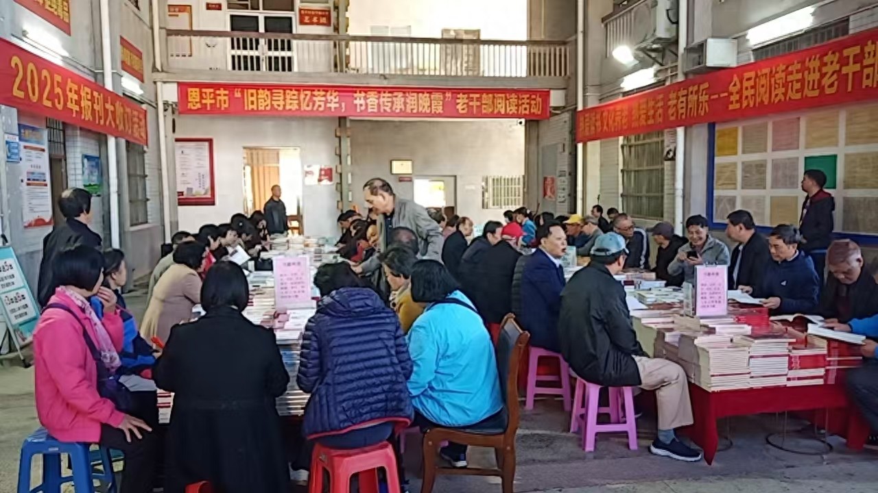 11月27日,笔者路过恩平市老干活动中心,在中心中厅,只见一群长者围坐在两个摆满新书的长枱上,有的在饶有兴味地翻阅书籍,有三三两两在图书上交流,有的请来工作人员介绍书价。读书、评书、买书此起彼落,小小的老干活动中心热闹异常。若不是见他们个个白发苍苍,还以为他们是大中学校的老师在搞教学活动呢!恩平市老干局干部告诉笔者,这是该局与市邮政局合办的一连两天主题为“旧韵寻踪忆芳华,书香传承润晚霞”活动。恩平市邮政部门朱经理告诉笔者,在时下年代,在筹办这个专供老干部的活动时曾担心吃力不讨好,谁知,一呼百应,不少在恩城生活的老干部都慕名而来了。