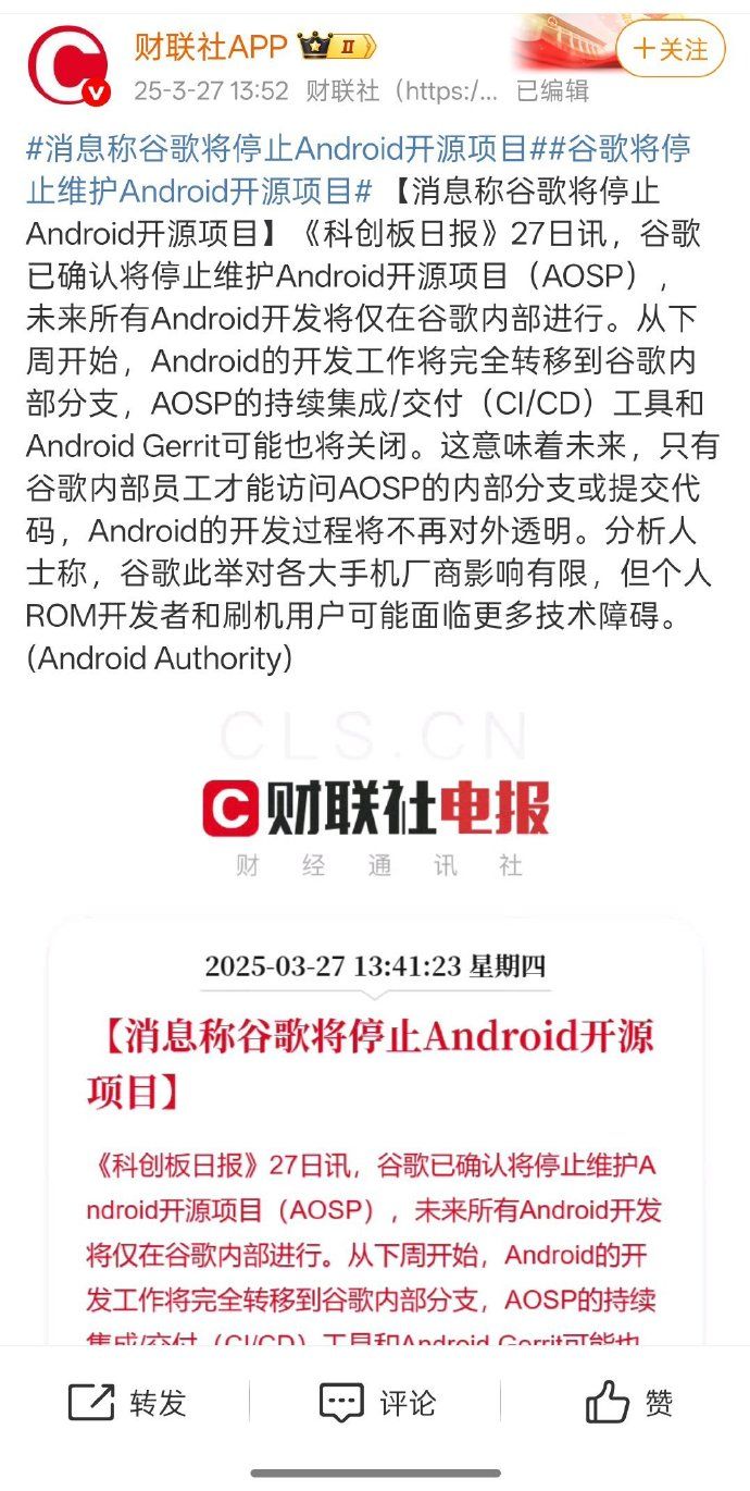 对于向 AOSP 贡献代码的第三方开发人员而言,他们跟踪谷歌对安卓所做更改的难度增加,外部开发者无法参与安卓共建,这在一定程度上削弱了安卓生态的开放性与包容性。而且,开发者需更严格遵循谷歌规范,可能导致开发时间与技术成本增加,创作效率降低。