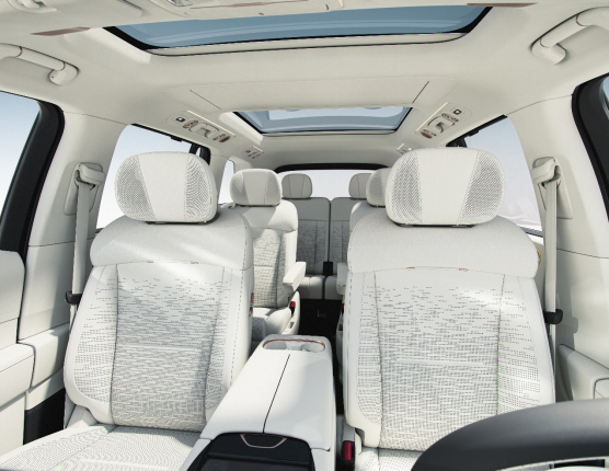 SPA Evo空间不止于大,还带来了灵动空间布局。在保证安全结构和前引擎舱空间的前提下,SPA Evo架构赋能产品创造更大的空间带宽,可实现同级最高得房率88%以上,及同级最高1293mm以上的车内空间高度,实现全员旗舰级空间享受。后排纯平地板,满足身高1.3米的儿童直立行走;二排座椅采用550mm超长滑轨,放倒座椅更可变身“超级大床房”, 三排增加了125mm的滑动空间,还支持最大155度的大角度后仰,实现三排空间平权。