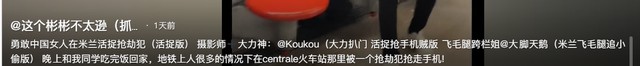 而且不仅找回了手机,还与米兰警察上演了一场地铁抓抢劫犯的紧张刺激戏码。